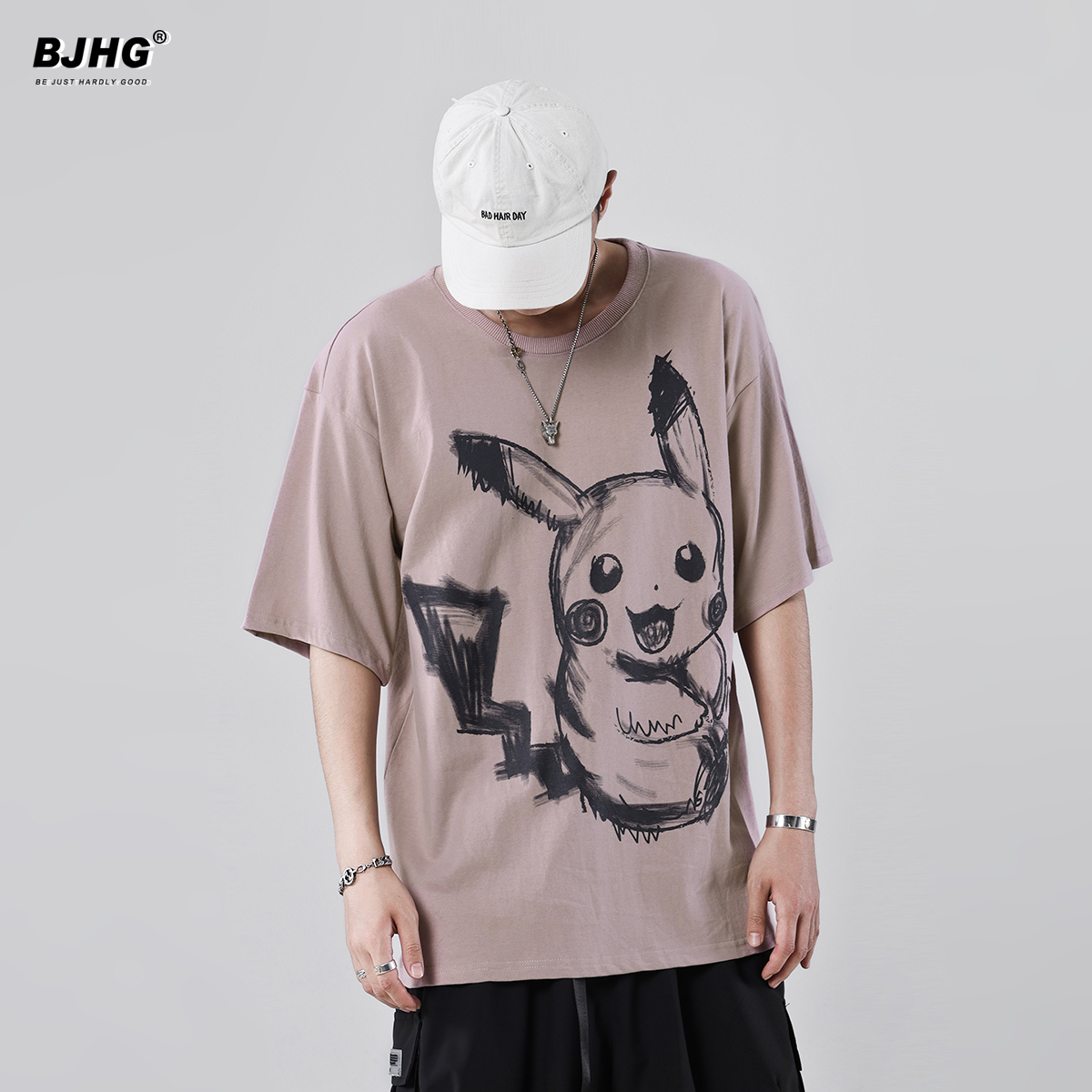 Summer animated cartoon printed short sleeves T-shirt Male Little crowdDay hip hop minimalist Boom Lovers INS half sleeves