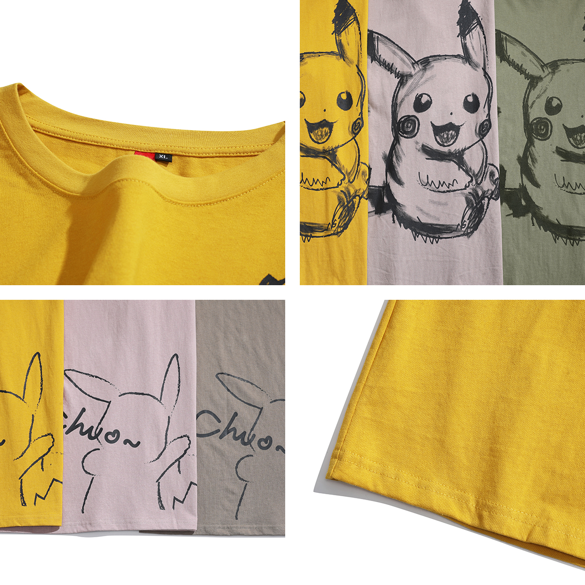 The yellow inky green pink dark grey color.