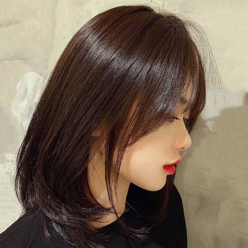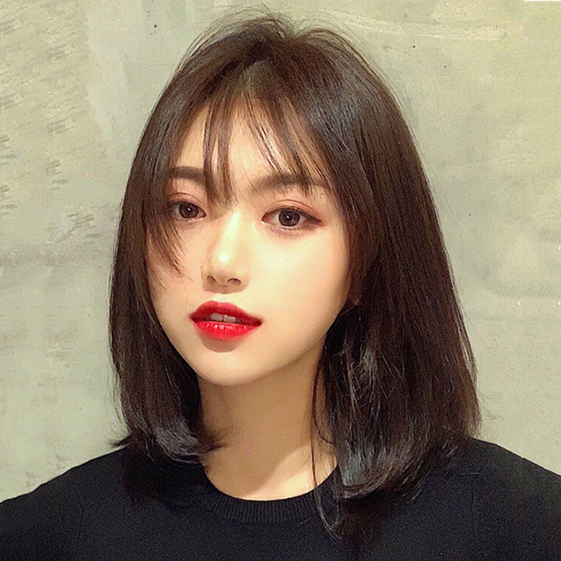 Wig female short hair medium long hair air bangs net red with the same collarbone hair real hair full headgear wig set