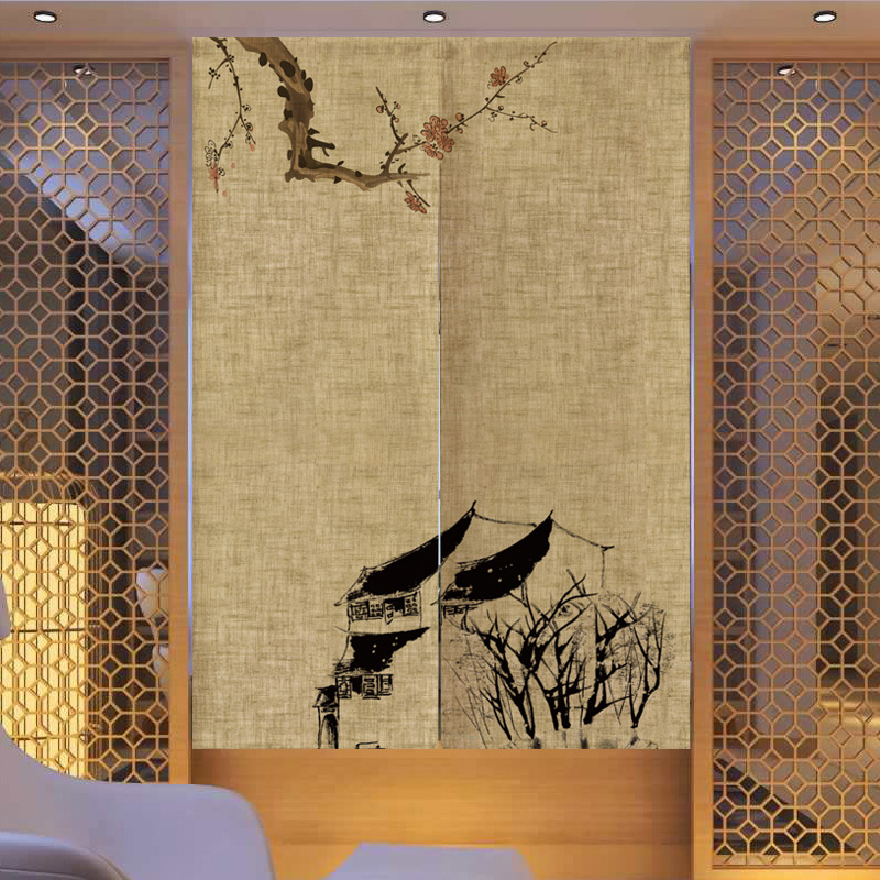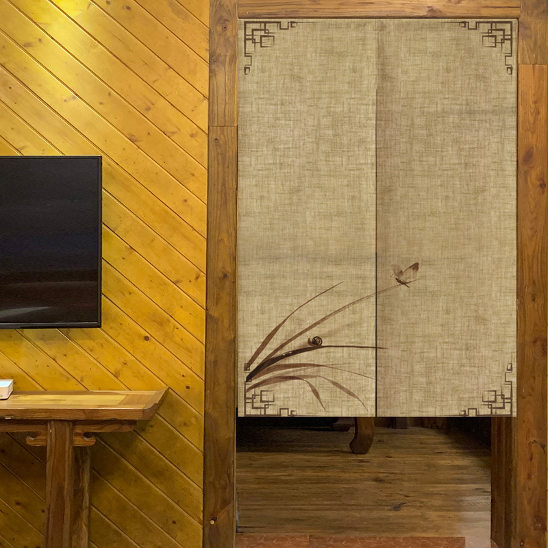 Door curtain cloth Art Chinese style Chinese wind living room Xuanguan partition window kitchen Bedroom free from punching and hanging curtain tea room cloth curtain