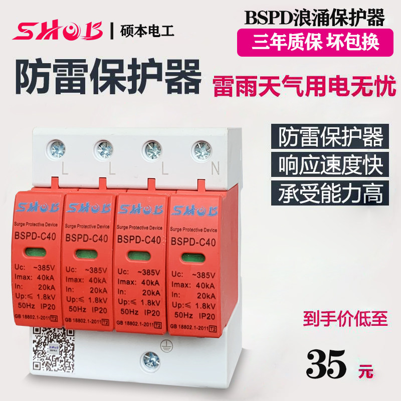Surge lightning protection protector household 4P lightning arrester surge protector 20 40 60KA lightning protection switch SPD