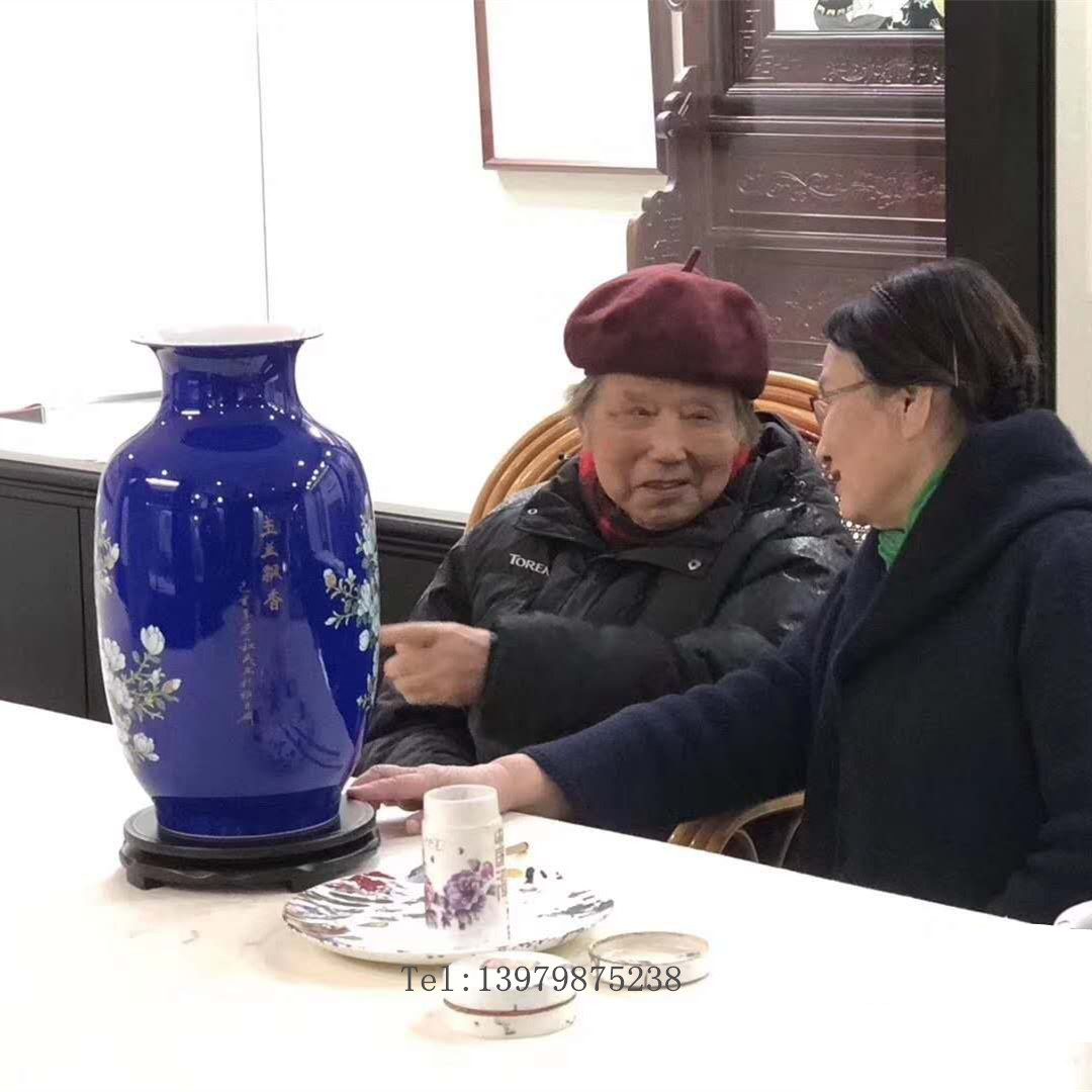 High temperature emerald blue glaze magnolia fragrant winter melon bottle flower bird pastel bottle Zhang Songmao Xu Yafeng master works