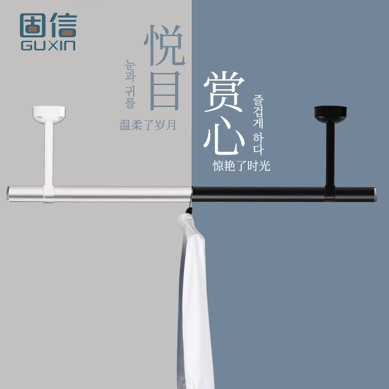 Guxin balcony stainless steel clothes rack fixed clothes rack drying rack single rod clothing store hanger baked black color