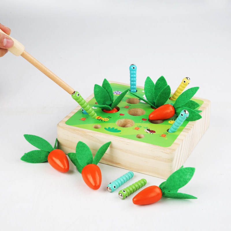Children's puzzle catching bug game to catch caterpillar magnetic fishing rod toy baby hand fine motor training