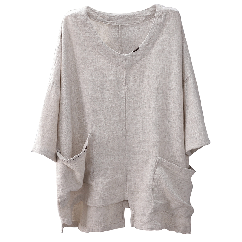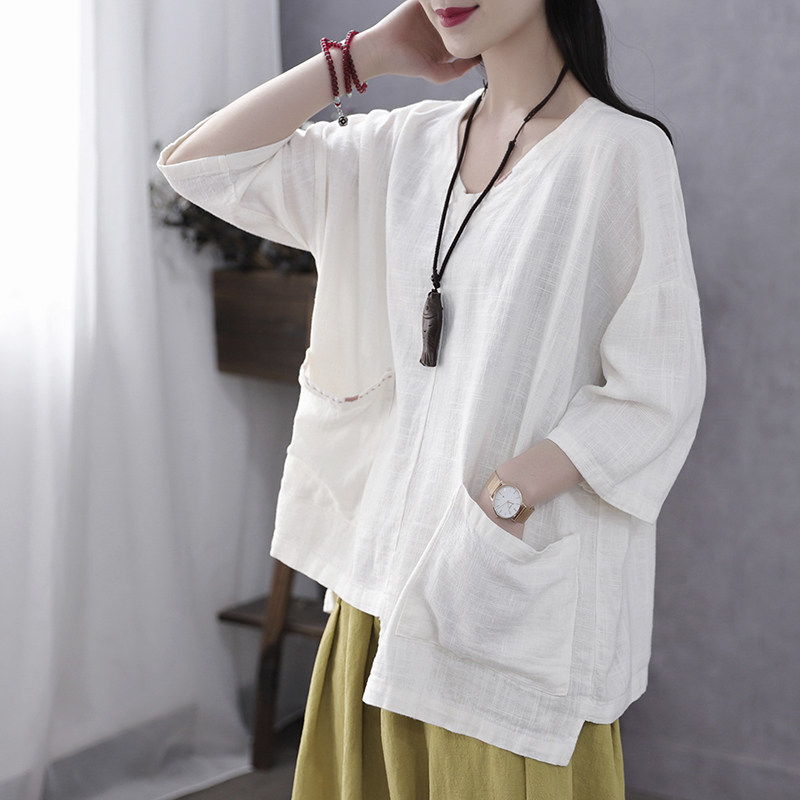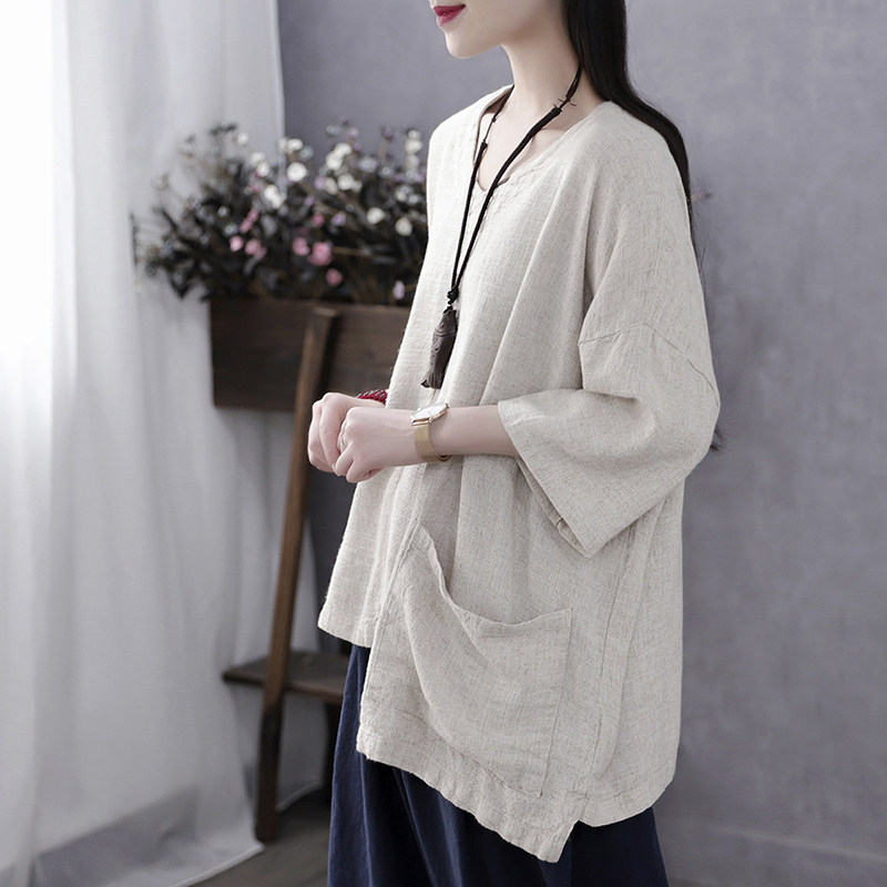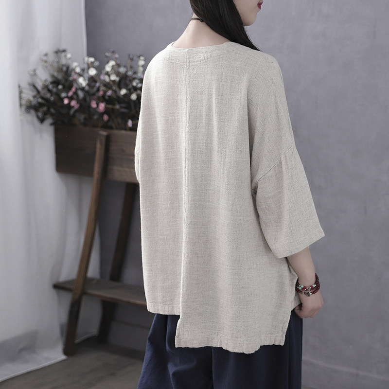 Han Soyi Retro Art Spring Summer New Large Size Women's Dress Summer Fat Mm Loose Cotton Linen 50% Sleeve T-Shirt Woman