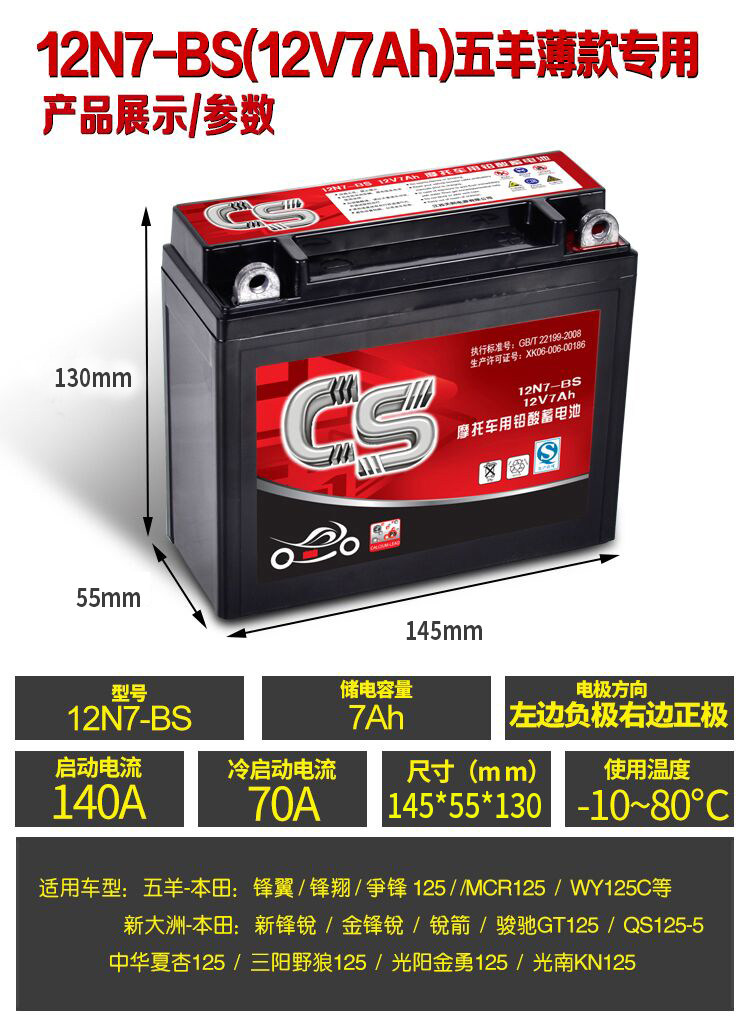 Motorcycle Battery 12v Battery 7a Wuyang Special Honda New Dazhou 125 Universal Battery Front Wing Dry Battery