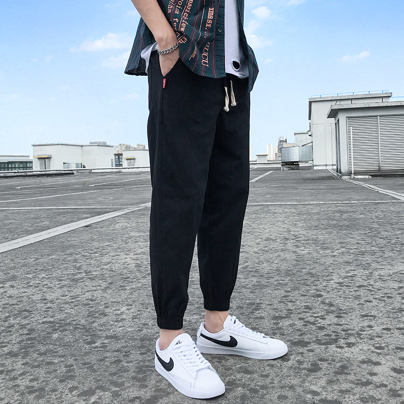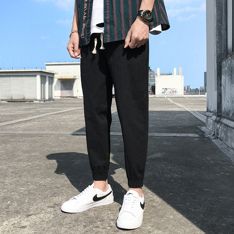 Summer casual pants, men's nine-point pants, thin section, Korean version, trendy, handsome, all-match, slim-fit, leggings, cotton and linen loose