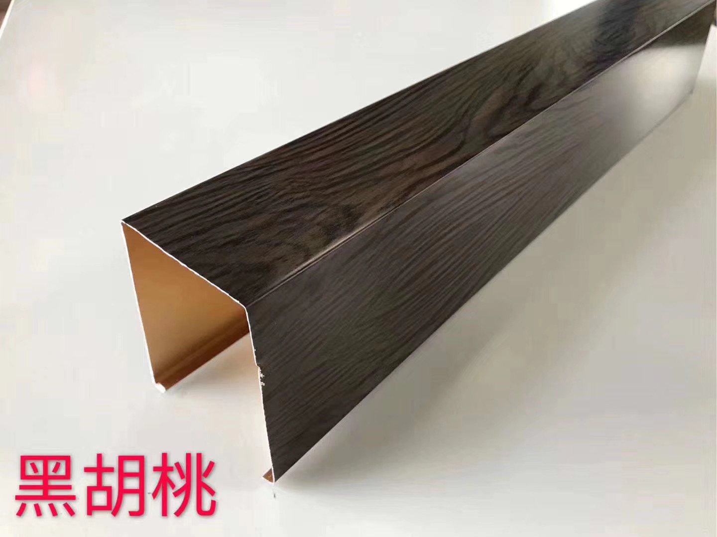 Shenzhen wood grain aluminum square through suspended ceiling U type groove arched aluminum square pipe door head partition column color grid material