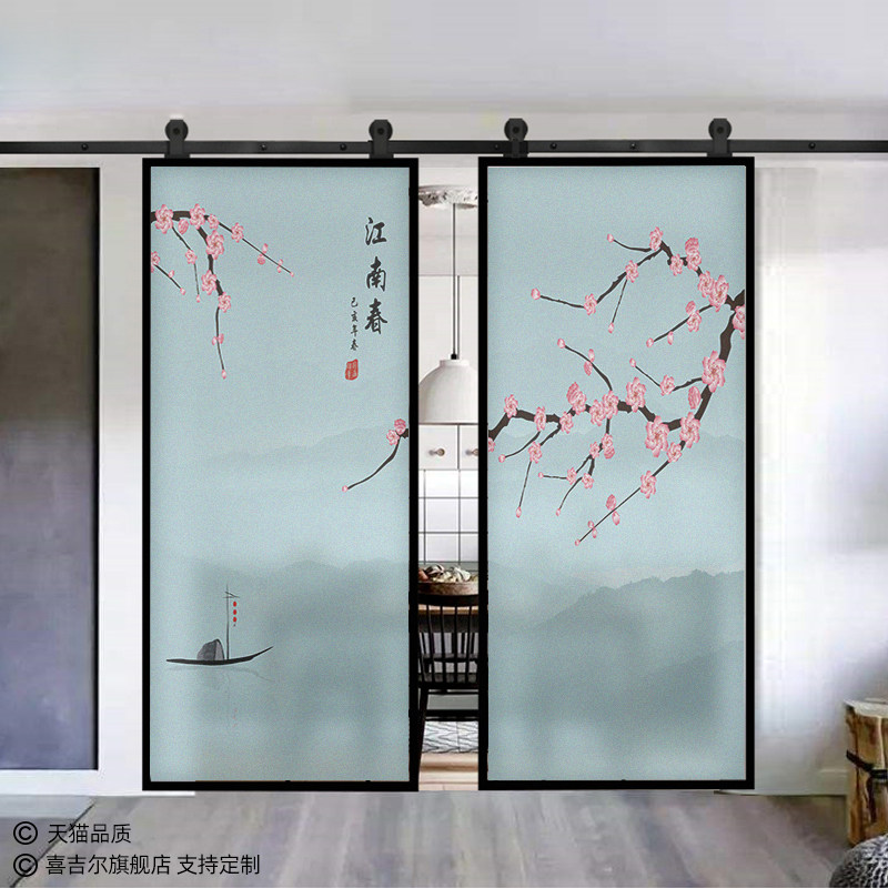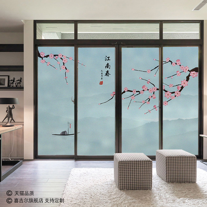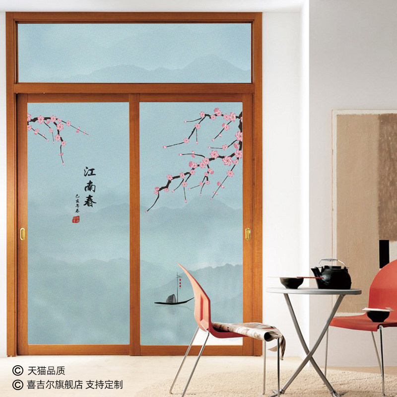 Chinese flower and bird living room sliding door glass Film hotel bedroom sliding door bathroom static electricity free matte sticker