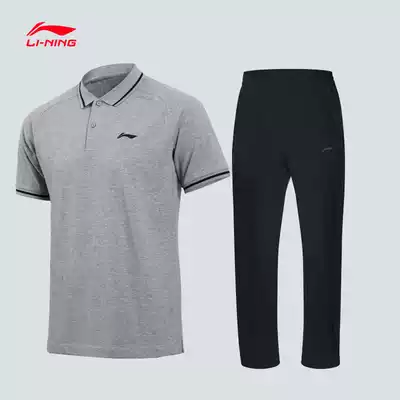 Li Ning sports suit men and women with the same cotton short-sleeved lapel T-shirt running casual sports pants two-piece suit