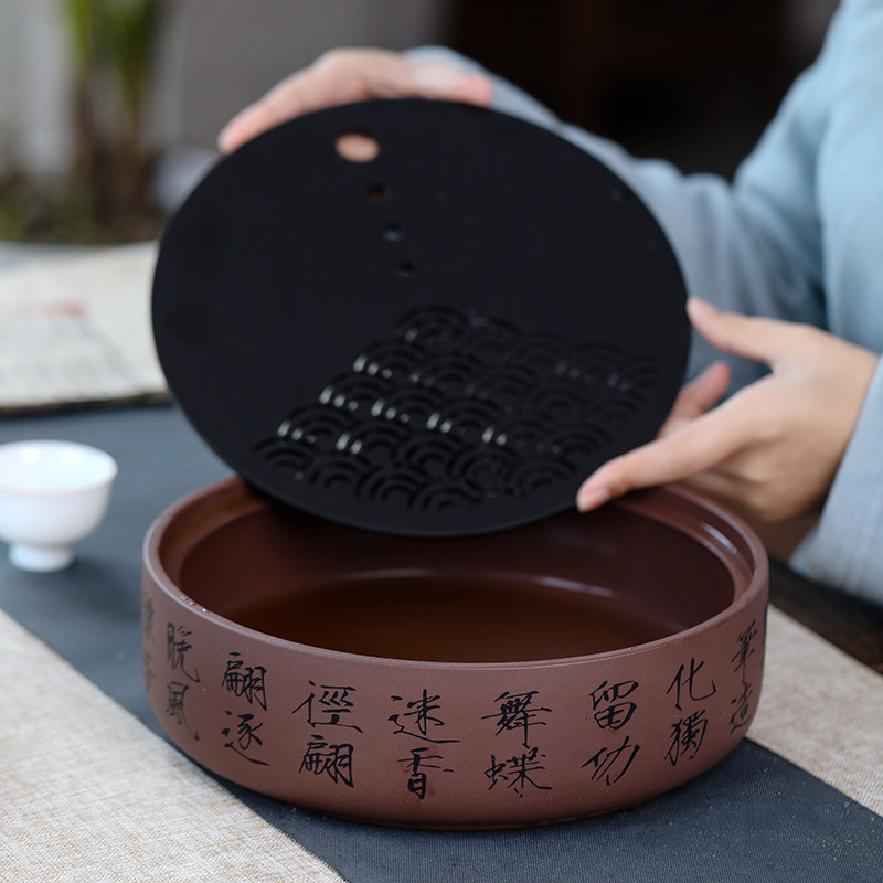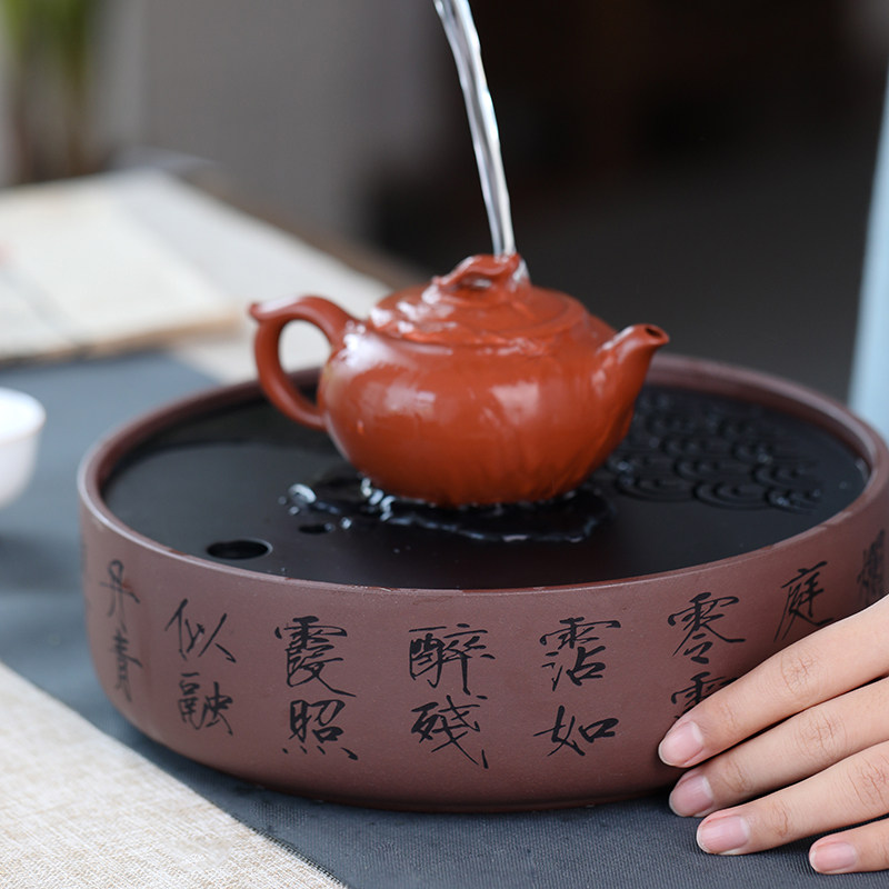Love Chixer Yixing Purple Sand Tea Tray Home Round Big Number Tea Desk Hand Carved Water Storage Tea Sea Kongfu Tea Furniture