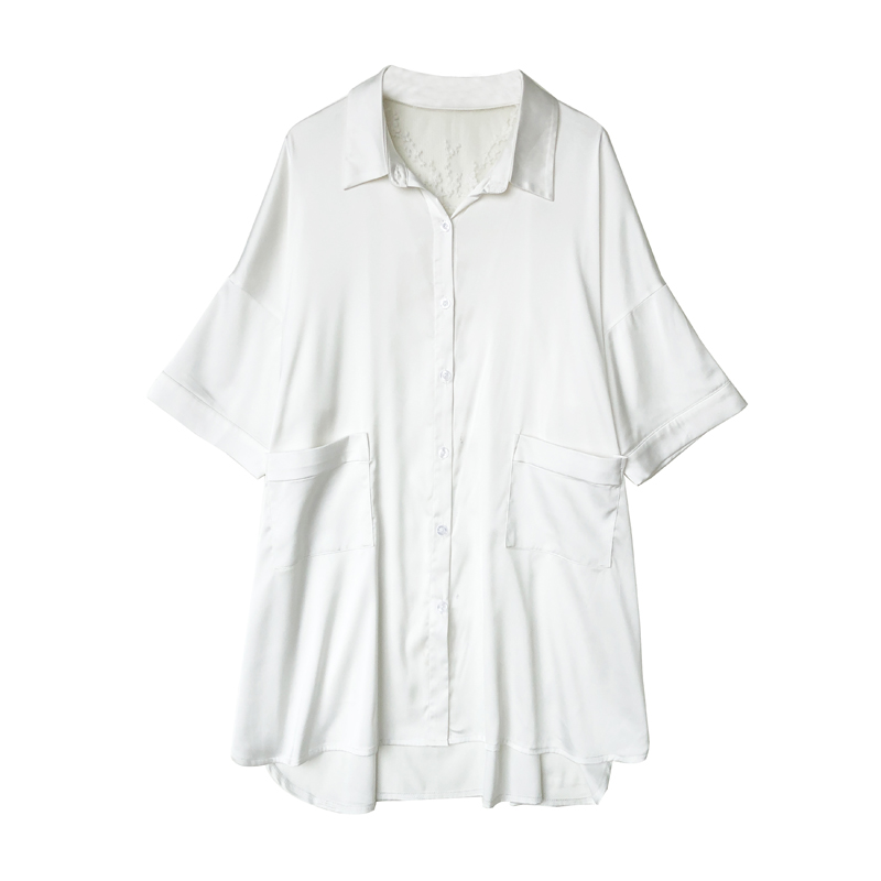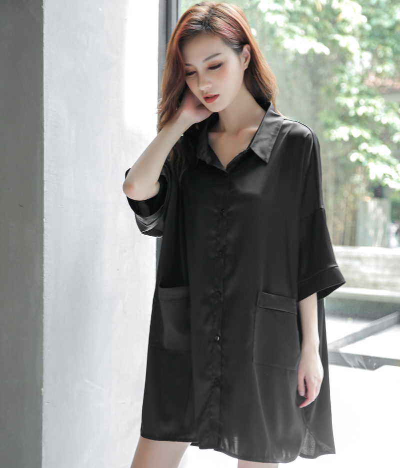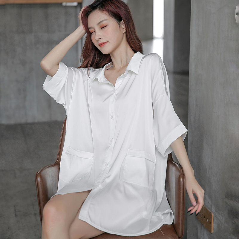 Summer New Pint Pyjamas Women's Ice Silk Sexy Shirts Sleeping Dress Nets Veil back thinner Casual Real Silk Home long version