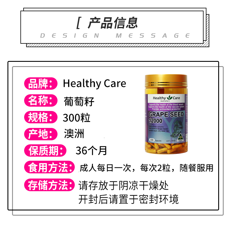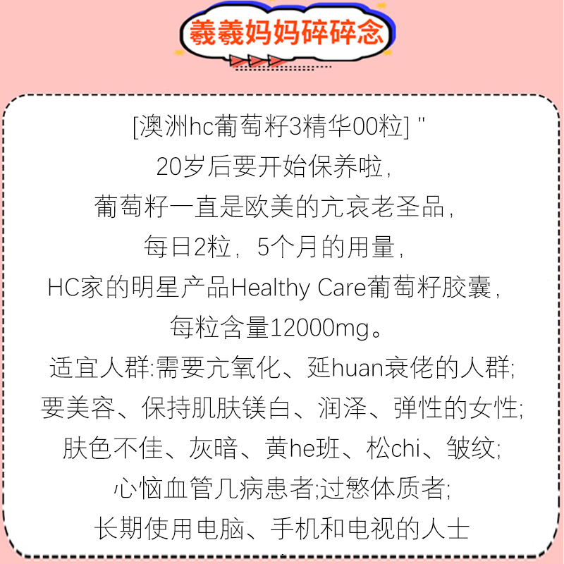 Australian Healthy Care grape seed anthocyanin essence powder capsule 300 HC white yellow 12000mg