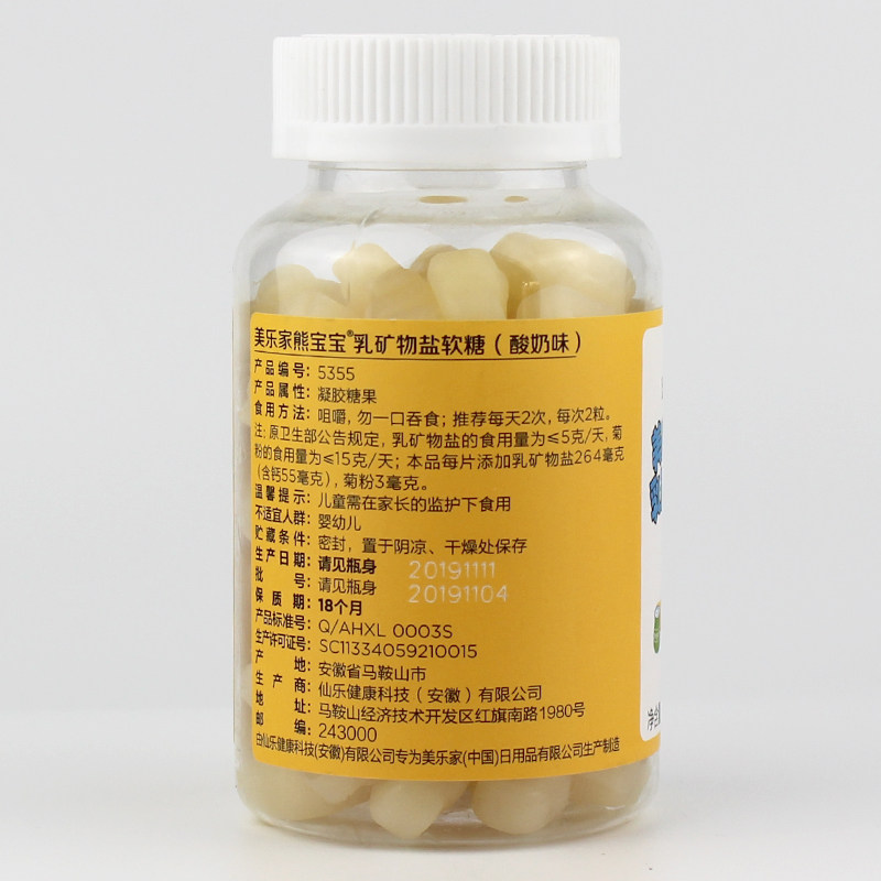 Mele Family Bear Baby Milk Mineral Soft Sugar 60 Grain Children Calcium Tablet Milk Calcium Guan Nets Environmental Protection Supermarket Flagship Store