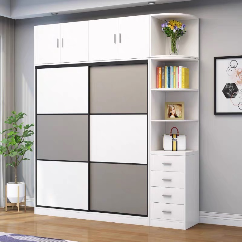 Multi-layer solid wood wardrobe sliding door custom modern minimalist Nordic home bedroom sliding aluminum alloy cabinet door custom