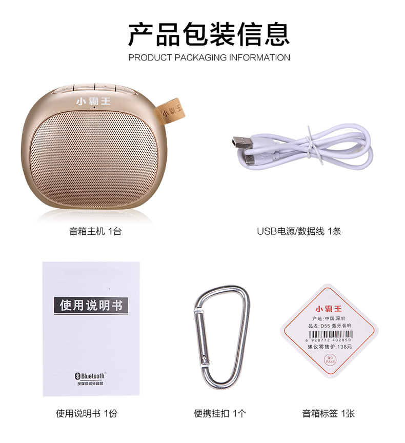 Xiaobawang D55 wireless bluetooth speaker mini audio portable car small steel cannon 3d surround player
