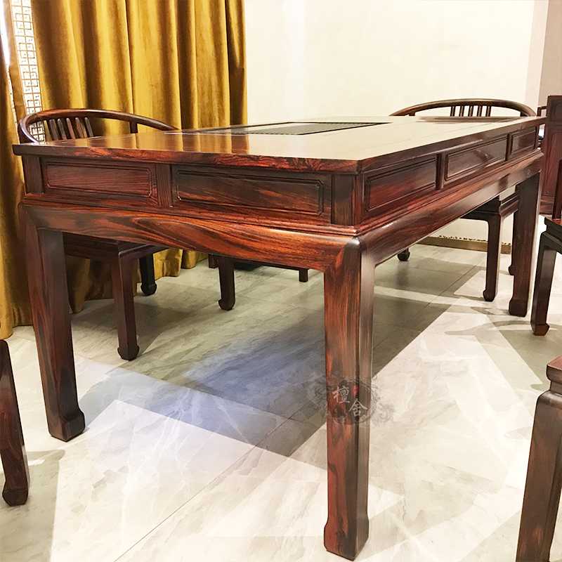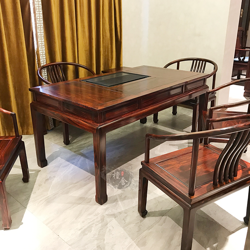 National standard black rosewood 1 58m tea table seven-piece set of rosewood 3 2 large luxury tea tables National standard black rosewood 1 8m tea table seven-piece set