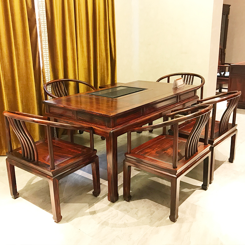 Indonesian black acid branch wood tea table and chair combination broad-leaved rosewood new Chinese mahogany tea table household solid wood tea table and chair