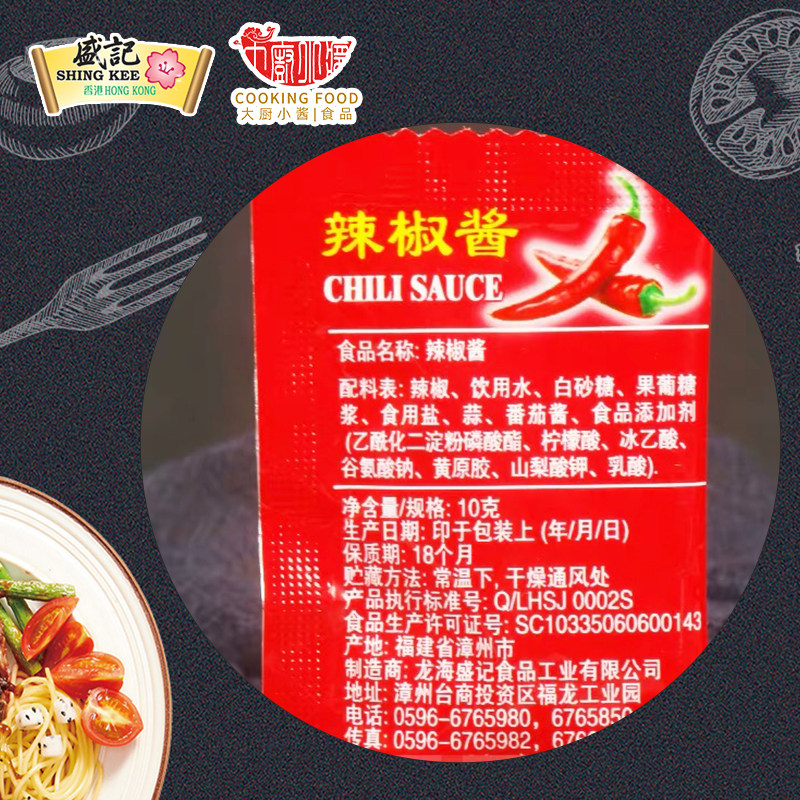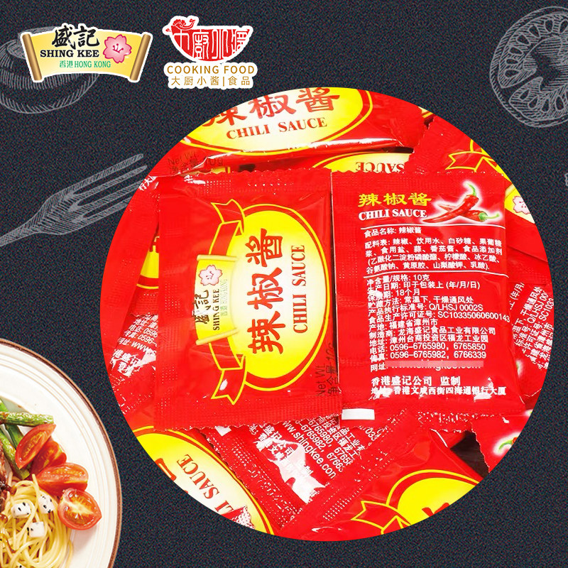 10g * 200 bags Shengji chili sauce Small package Hand-caught cake hamburger barbecue commercial small sauce 711
