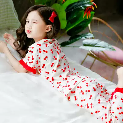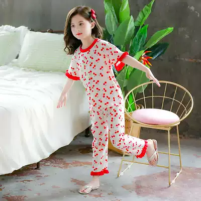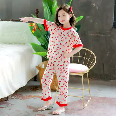 Children's pajamas short-sleeved set 2021 summer thin cotton girl's clothing Princess middle-aged children's home clothing two-piece set