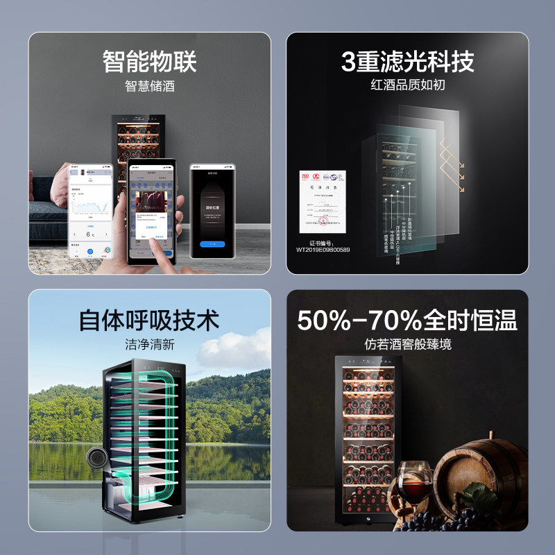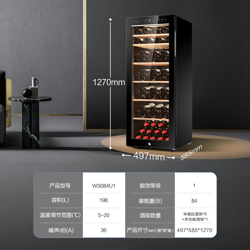 Haier WS084U1 household intelligent precision temperature control wine cabinet full space constant temperature and humidity 84 bottles