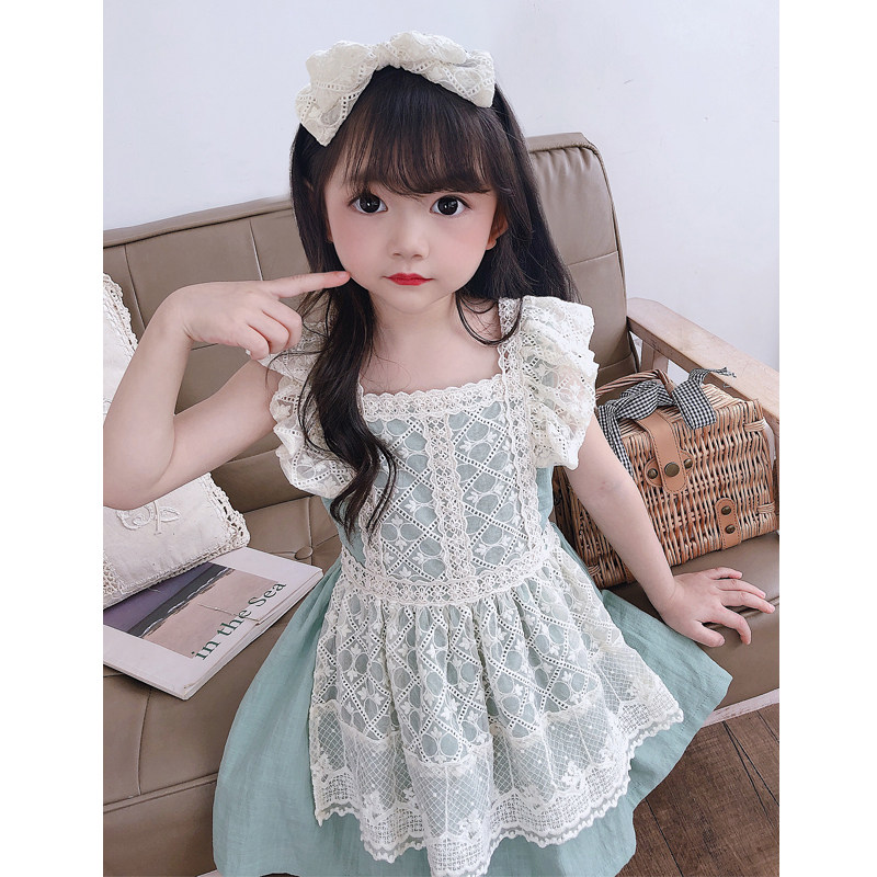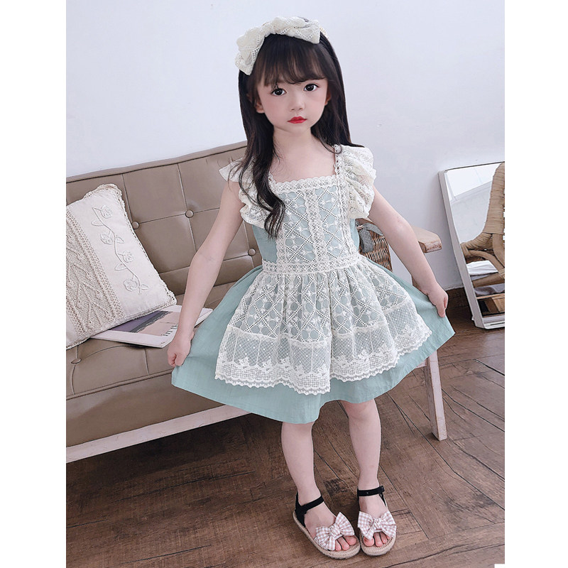 Girl's summer lace lace lace lace dress Korean version foreign air baby pendant with skirt 2023 new child vest skirt-Taobao