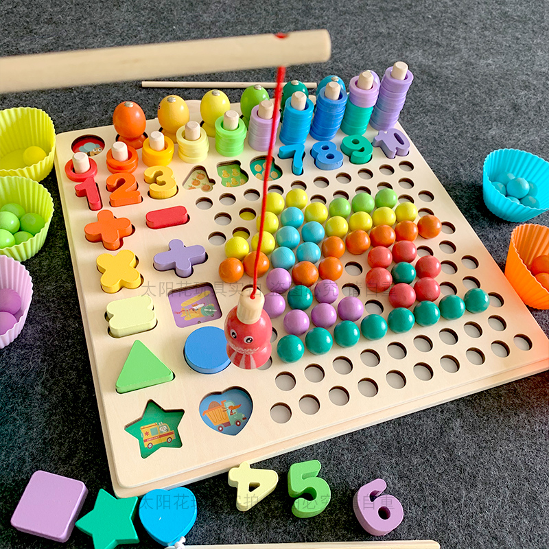 Children's digital shape pairing toy kindergarten early teach puzzle hand eye coordination training clip fishing game