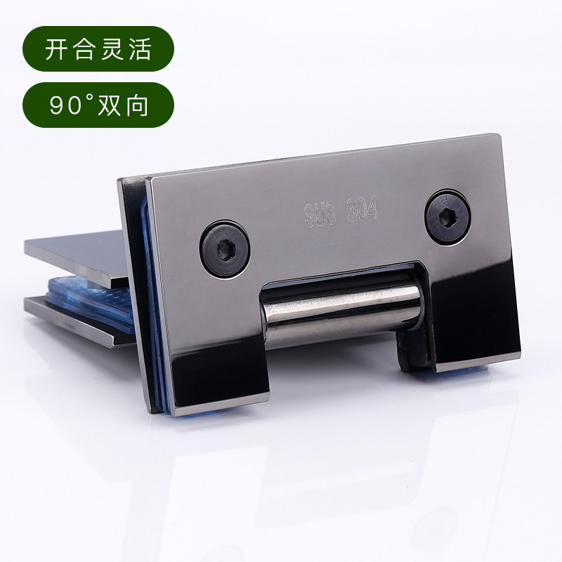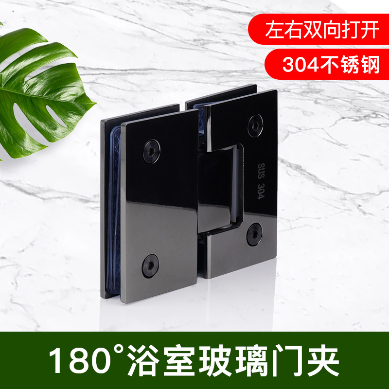 Black titanium 8K bright light mirror two-way hinge stainless steel 180-degree bathroom clip thickened 304 No frame glass door clip