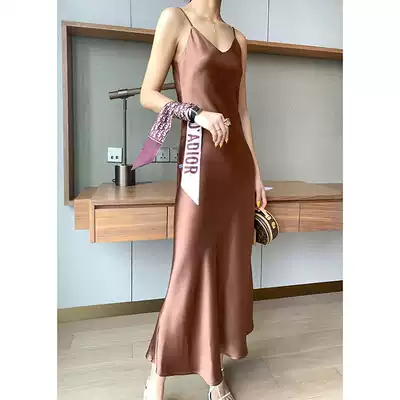 MAXMAY imported triacetic acid satin suspenders dress women's silk long skirt high-end sleeveless temperament summer