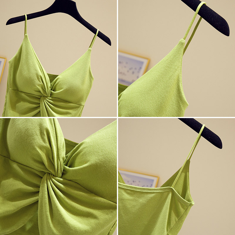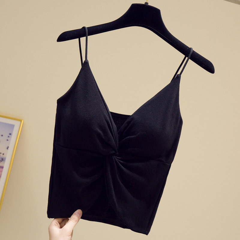 Deep V-neck sleeveless camisole women's spring and summer sexy high waist beauty hug baby bag chest pad underwear niche outside wear top