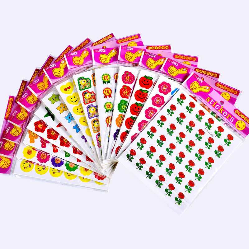 (3600 stickers) 10 packs of prizes (2500) 10 packs of five-pointed stars (3000 stickers) 10 packs of smiling faces (3000 stickers) 10 packs of apples (2500 stickers)
