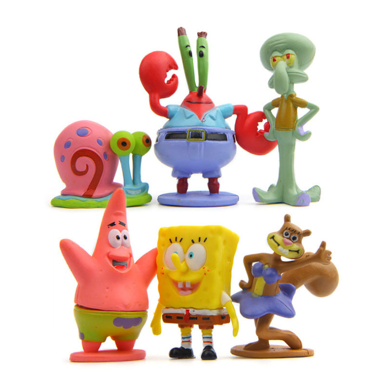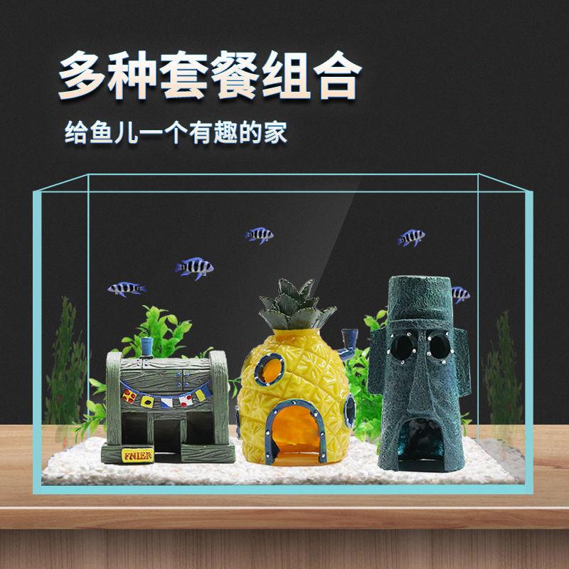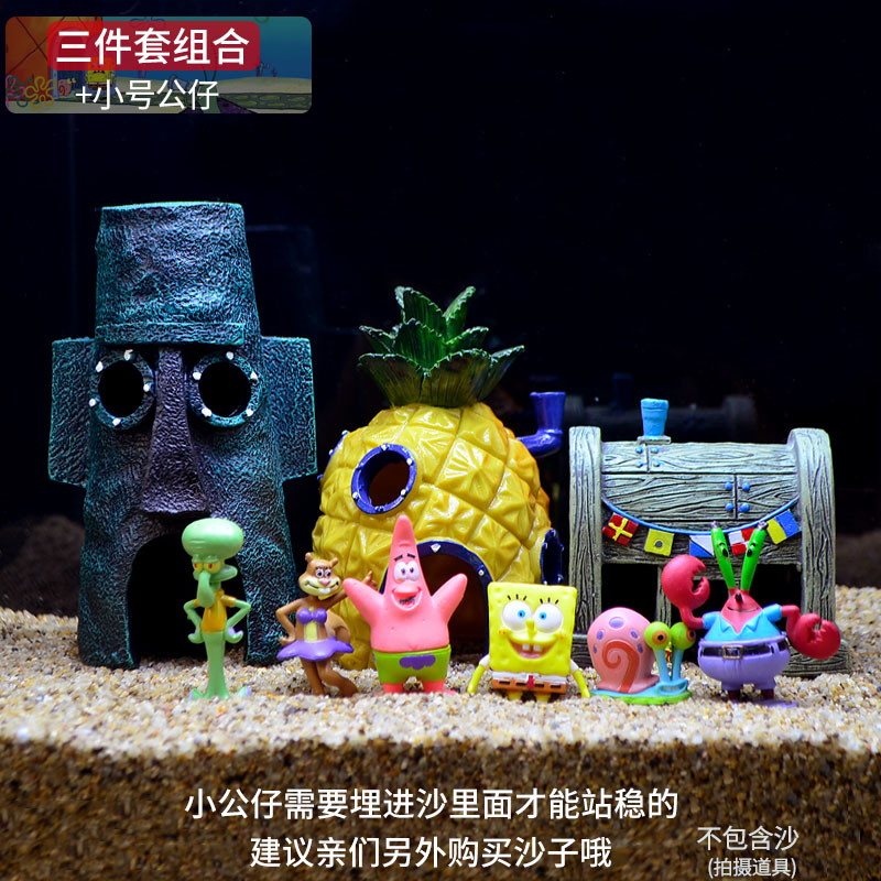 SpongeBob SquarePants 6 small dolls dodge pot one pineapple room (resin) dodge pot one mask man (resin) dodge pot one crab dining room (resin) pineapple mask crab dining room three-piece set pineapple three-piece set
