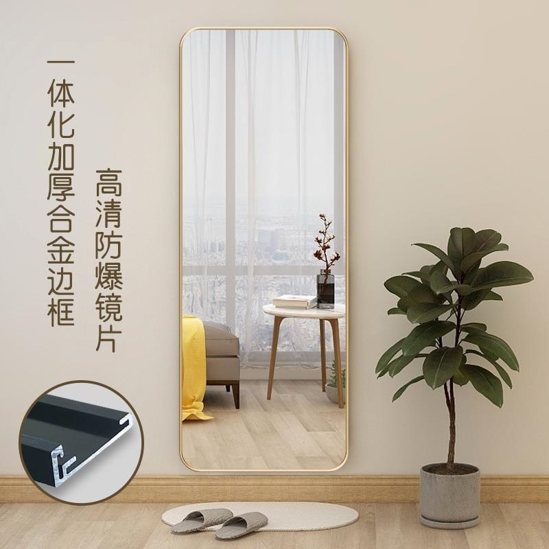Full Body Mirror Wall-mounted Wall Body Mirror Wall-mounted Dressing Mirror Rectangular Wash Bench Makeup Aluminum Alloy Frame Dorm Room