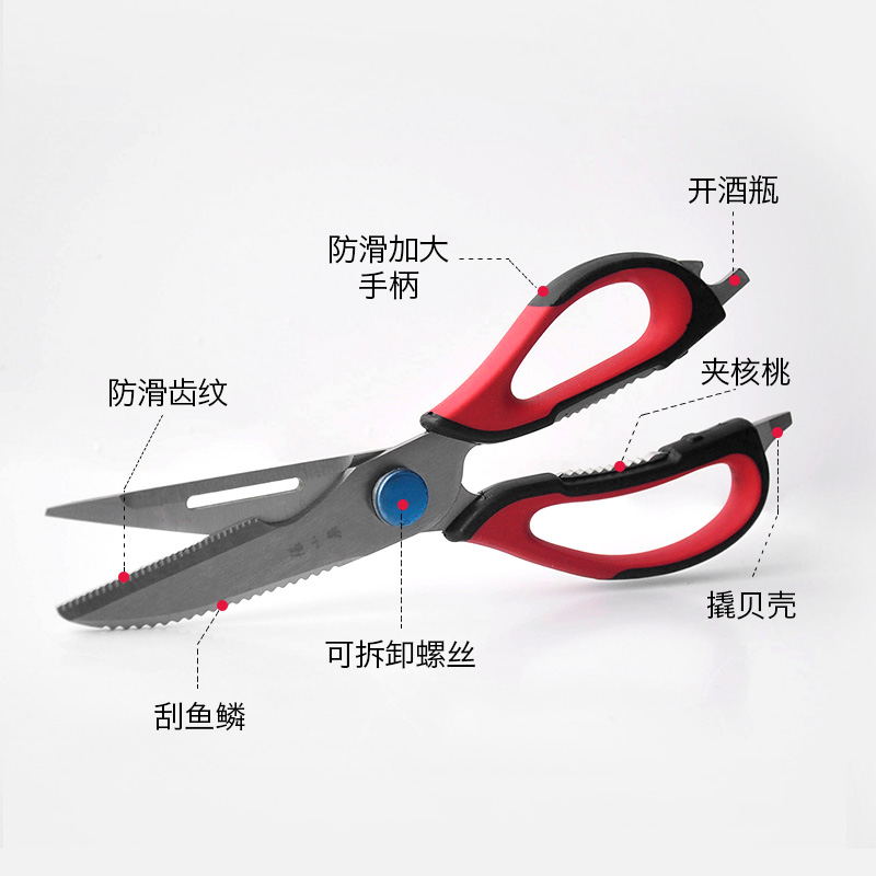 Zhang Koizumi Kitchen Scissors Home Stainless Steel Chicken Bones Cut Multifunction Scraped Fish Scale Kill Fish Cut Chicken Claw Scissors Food