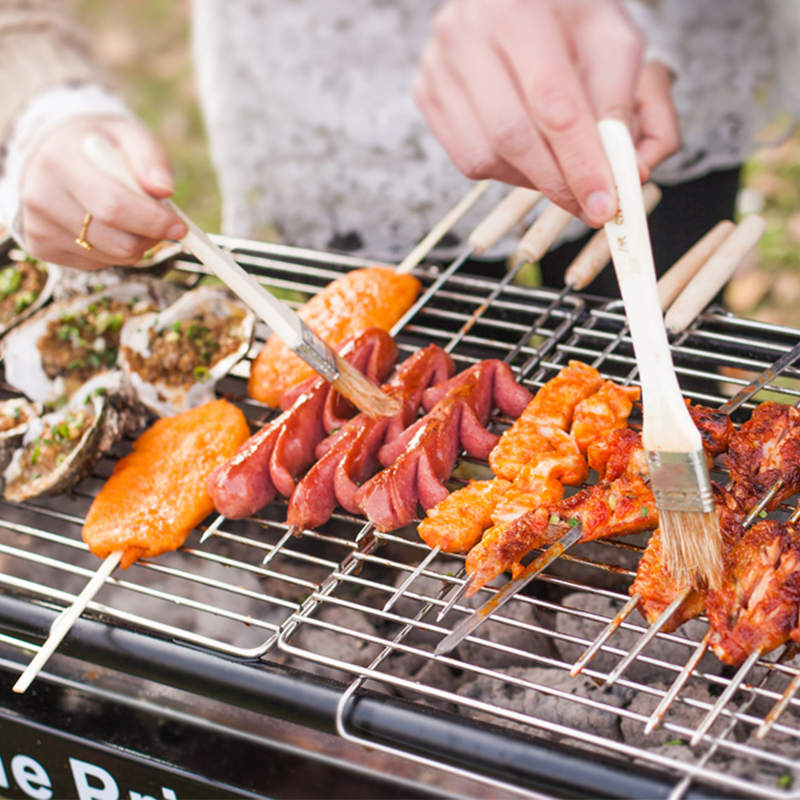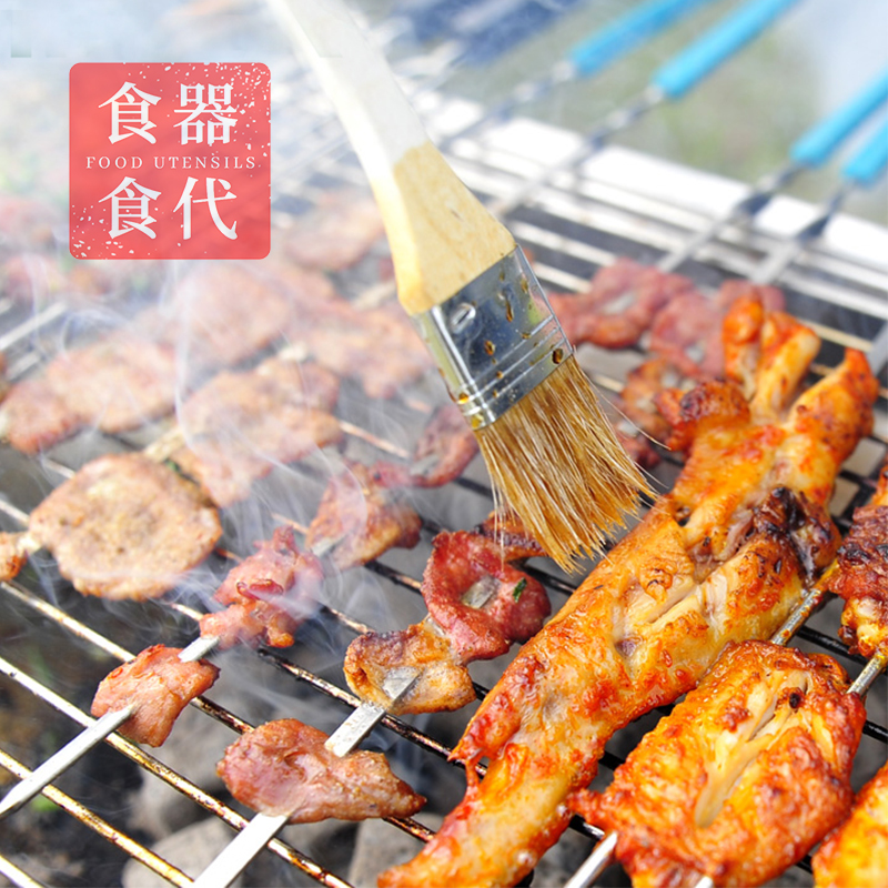 Pig bristle bristle brush barbecue brush oil brush high temperature barbecue kitchen pancake household barbecue tool accessories 2 pieces