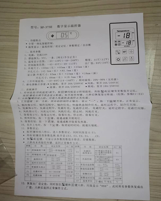 SF-373E Commercial freezer Zhongshan Shangfang temperature-controlled meter Zeynko cake cabinet temperature controller temperature controller