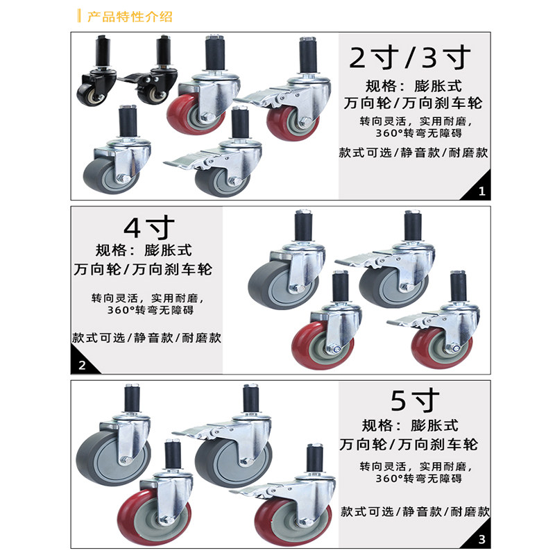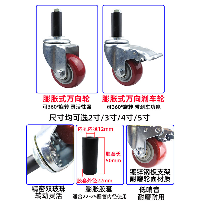 Universal wheel 3 inch 4 inch lean tube mute caster 2 inch 5 inch brake puffy wheel round tube composite tube small wheel