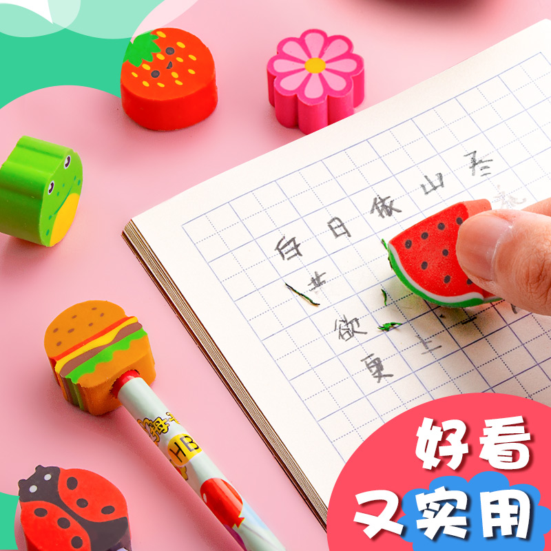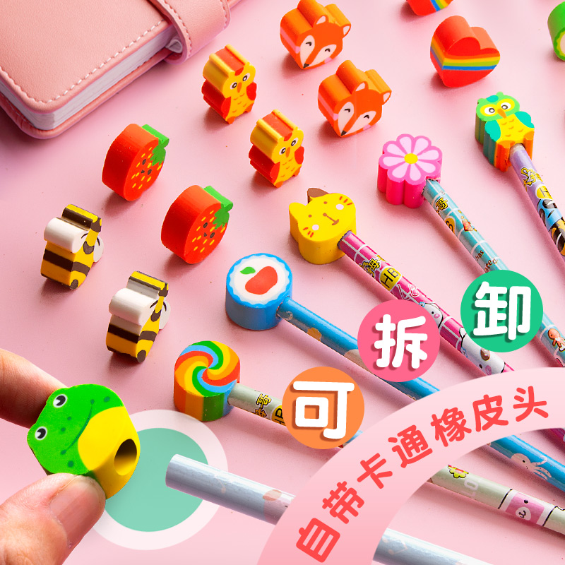 Children 2 than pencil cap primary school kindergarten with beginner seat belt eraser head cartoon cute super cute creative outfit combination 100 pack HB writing pencil wholesale