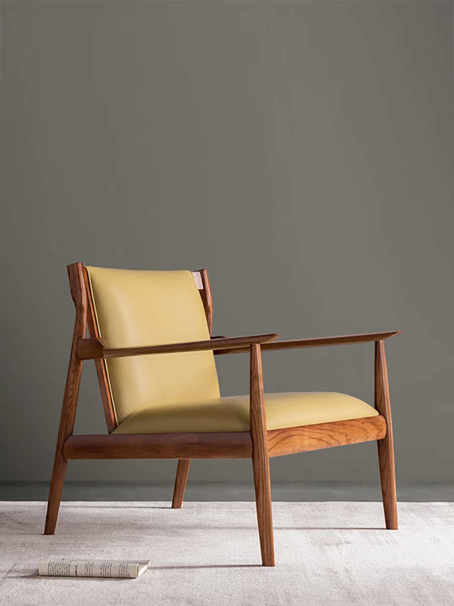Nordic Solid Wood Sofa Chair Leisure Chair Leather Ash Wood Simple Single Chair Living Room Balcony Designer Chair