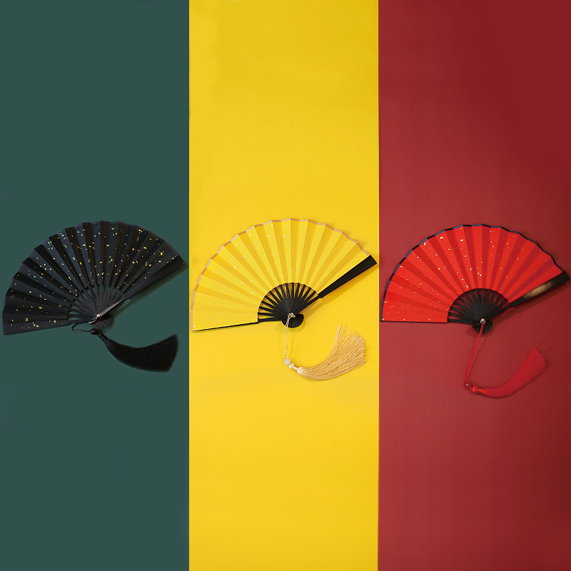 Four Inch Sprinkle Gold Mini Fan (White) 5 Inch Double-sided Sprinkle Gold Mini Fan (Black) 5 Inch Double-sided Sprinkle Gold Mini Fan (Red) 5 Inch Double-sided Sprinkle Gold Mini Fan (Yellow) 5 Inch Face Sprinkle Gold Mini Fan (