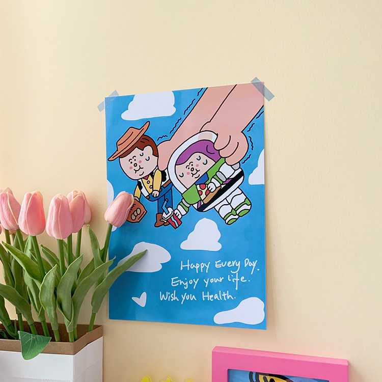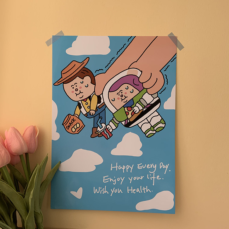 ins korean cartoon illustration poster cute retro bedroom wall background decoration