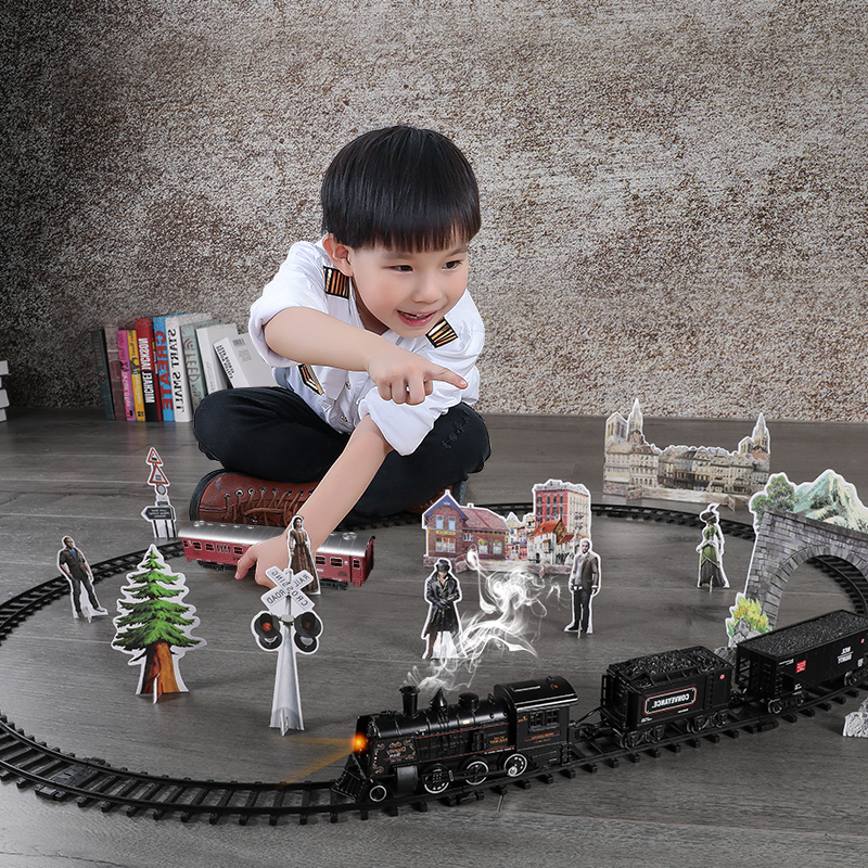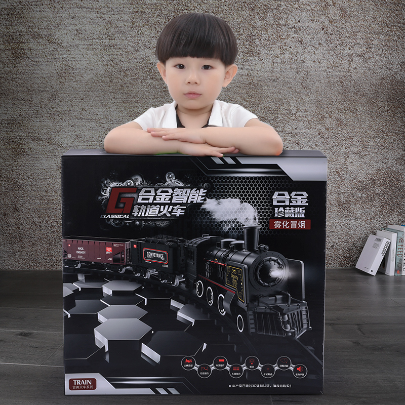 Alloy high speed rail parking children's electric small train set Track Vintage Steam train model Toy Boy