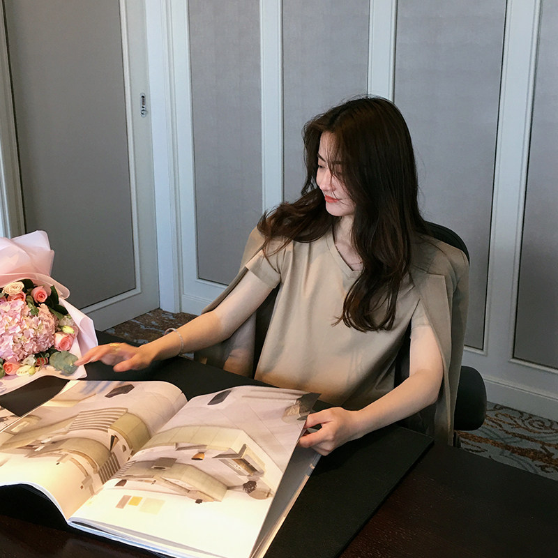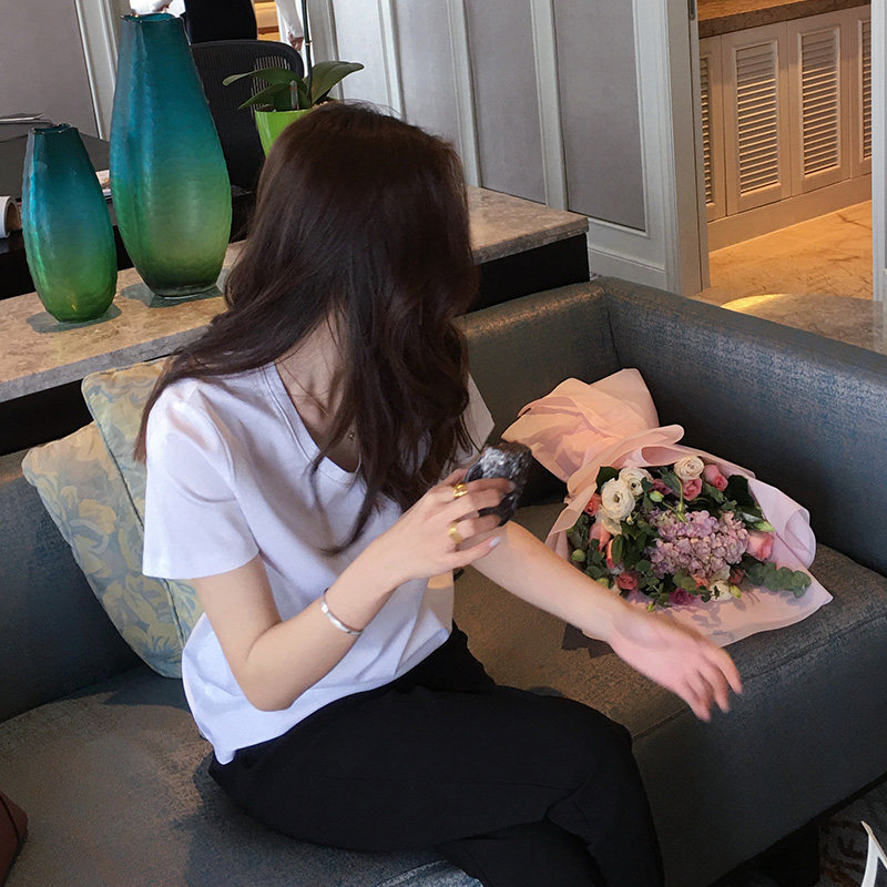 LICKYSENIOR main push light AND cool silk cotton V-neck SOLID color short-sleeved T-shirt WOMEN's T-shirt top