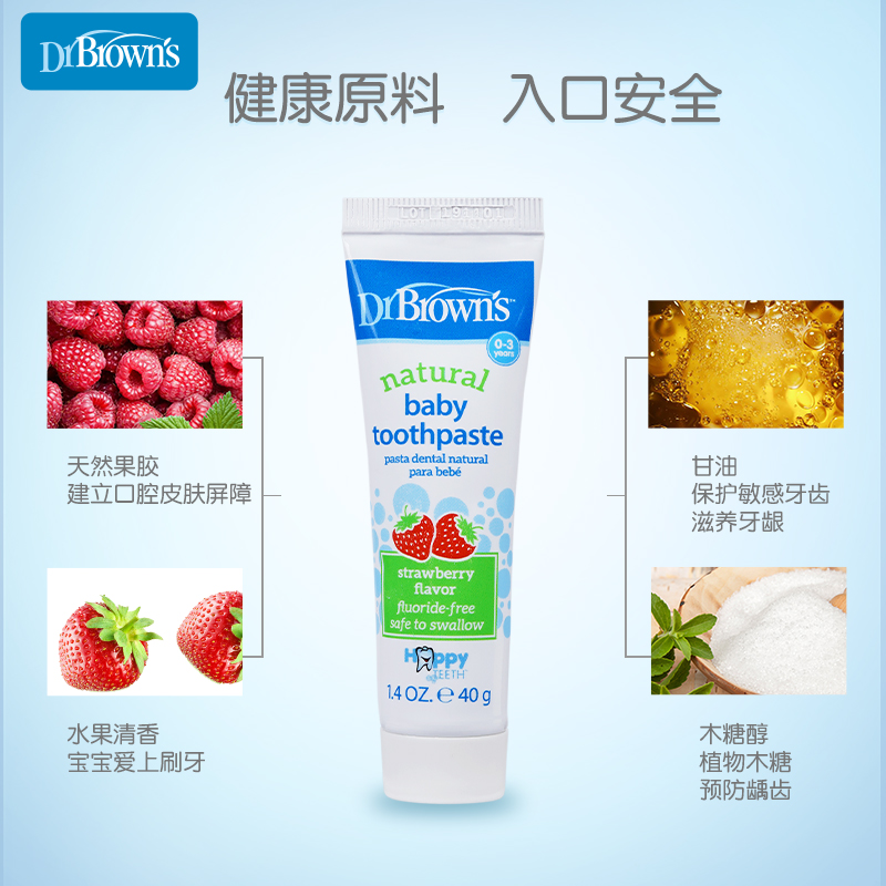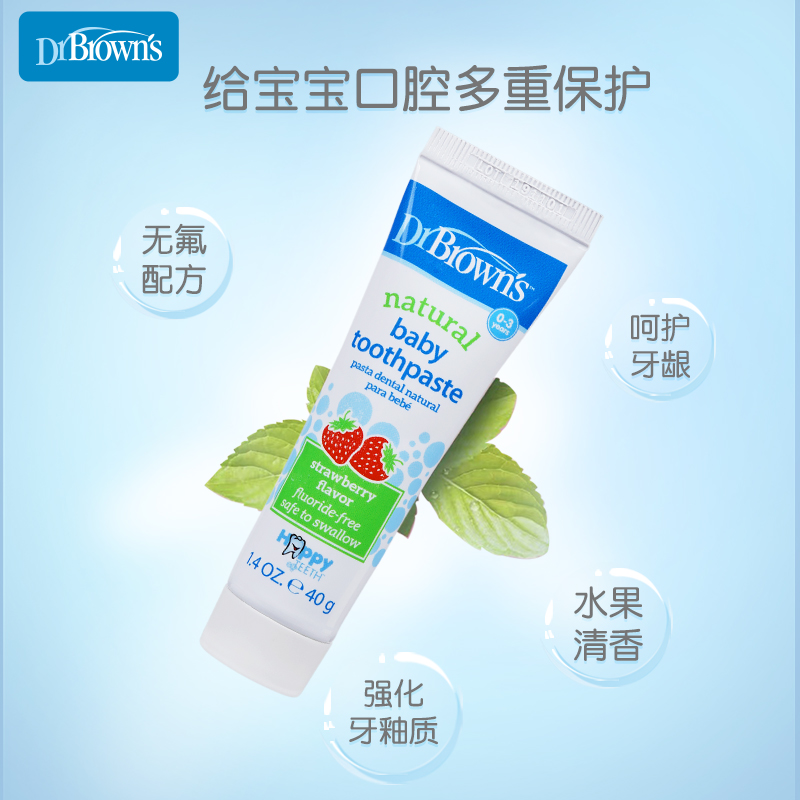 Dr. Brown Childless Fresh Taste 0-3-year-old strawberry apple Pear Taste Care Tooth Toothpaste