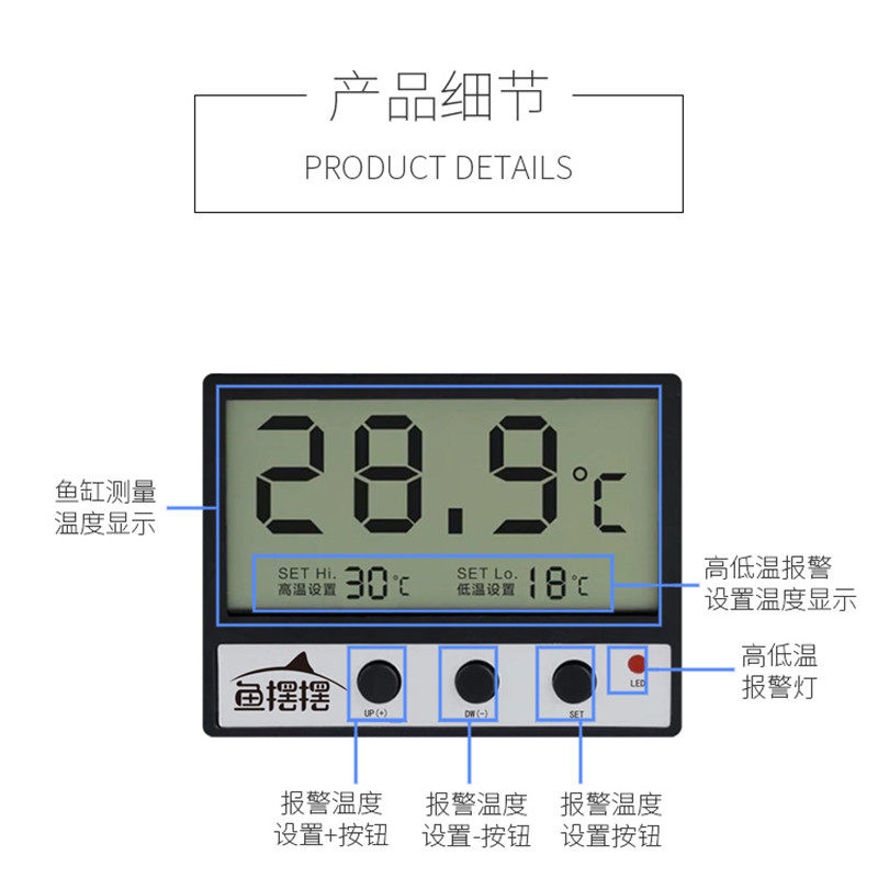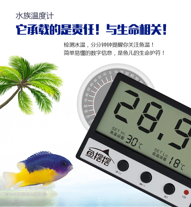 Fish tank thermometer mini aquarium water thermometer LED liquid crystal electronic digital display tank external sticker high and low temperature alarm