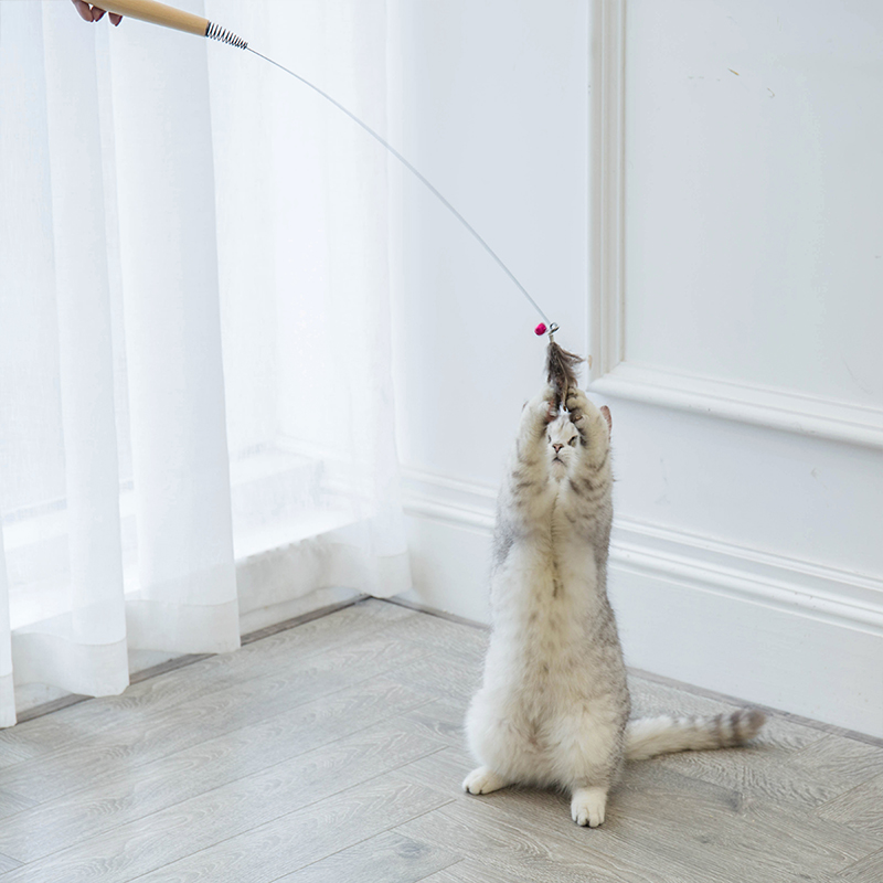Telescopic teasing cat stick long pole steel wire resistant to cat toy kitty Cat Supplies Small Cat Infant Cat Interaction Bell Feather Cute