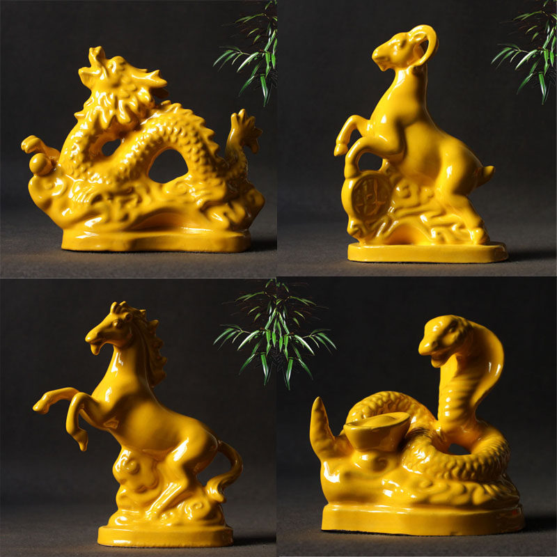 Ceramic XII Zodiac Shaw Rabbit Dragon Snake Horse Cocky Pork Fengyuan Water Swing Part Home Decoration