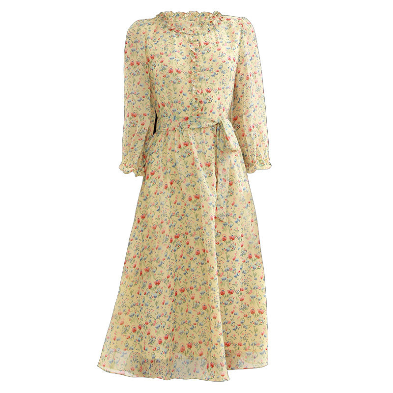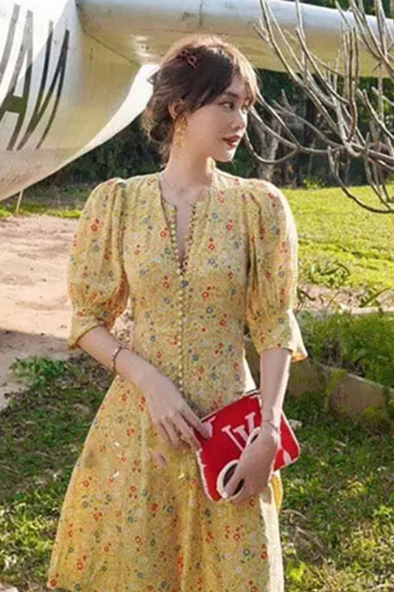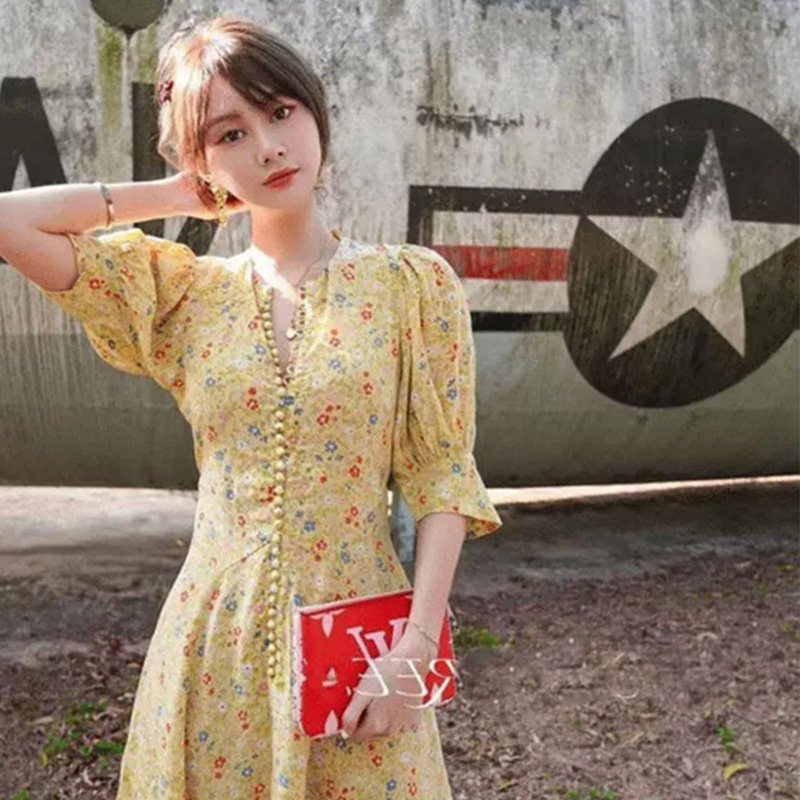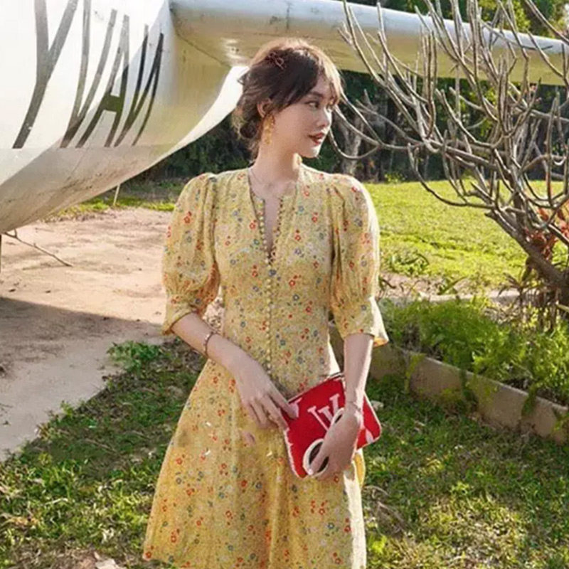 2020 Summer new women's dress Grand size rouje crummy dress Yellow Temperament Goddess Van Clothing Foreign Dress
