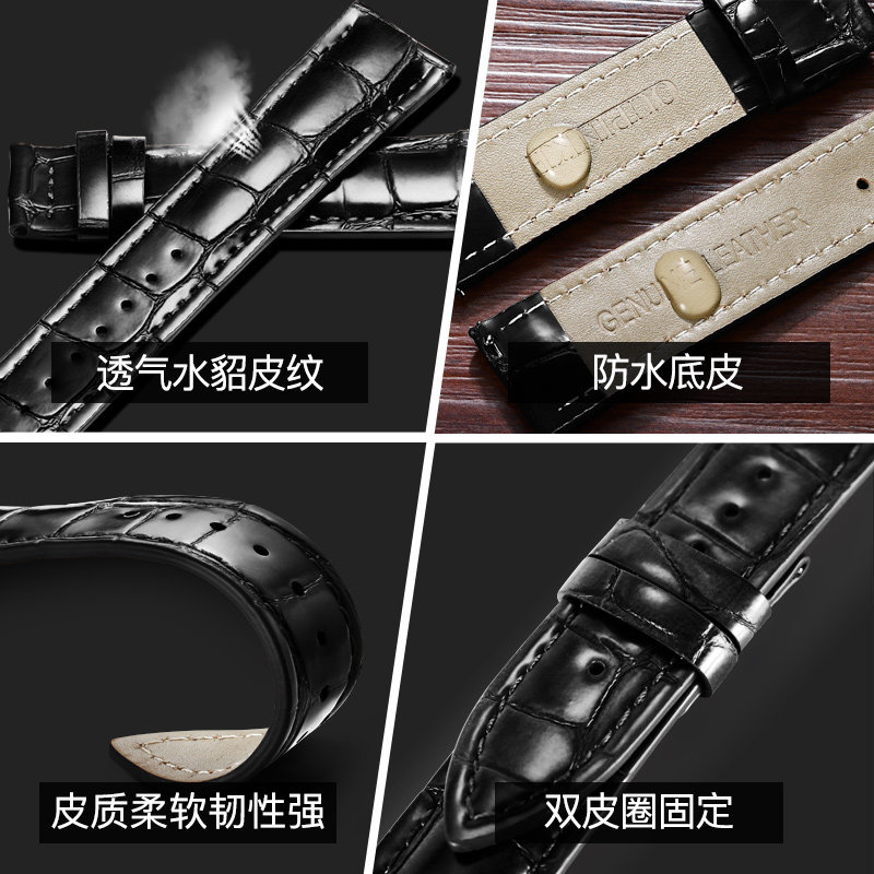 Men's watch pure first layer cow leather soft waterproof breathable strap stainless steel pin buckle switch raw ear