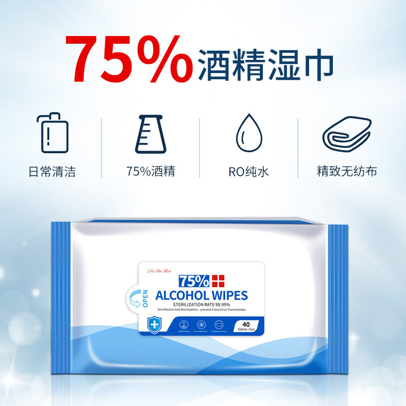 (3 Packaging) Alcohol disinfection wet towels 75 germicidal and bacteriostatic disposable portable packaging 40 pumping-type manufacturer